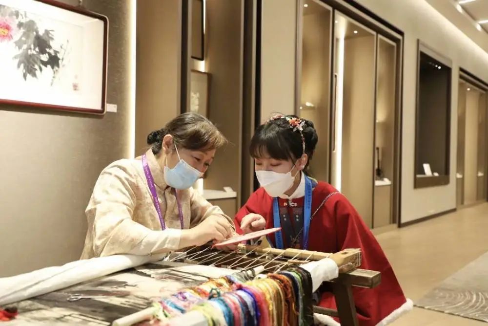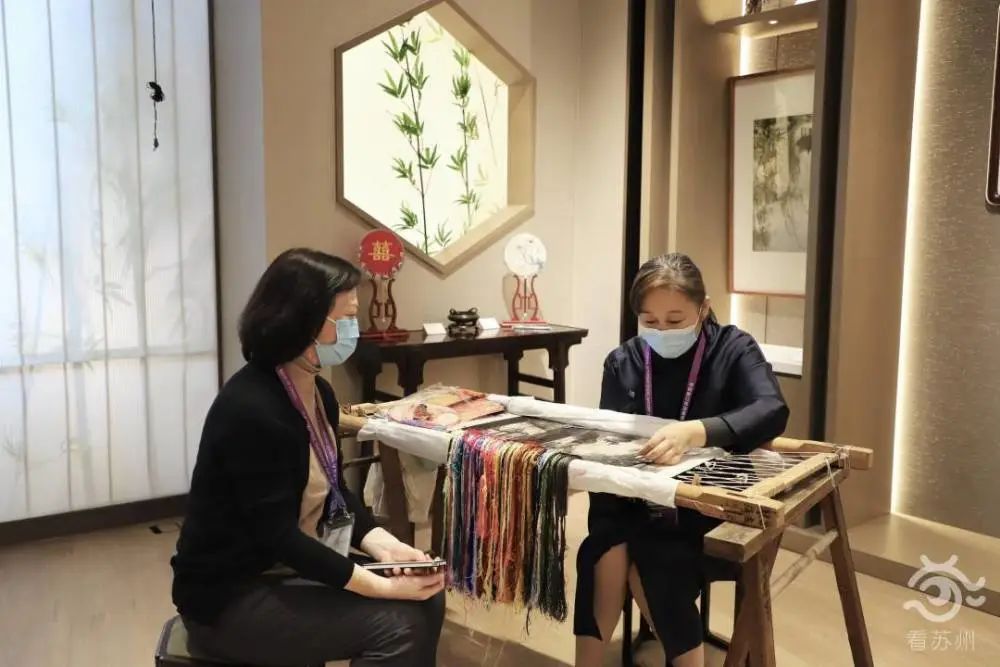 在賓客填門的“蘇作館”,在一件件精巧非凡的蘇作文物中,在宋錦拎包、緙絲旗袍、蘇繡掛件等熱銷衍生品中,在蹲坐著傾聽吳派古琴藝術非遺傳承人講授知識的年輕人中……“蘇流”正涌向世界。